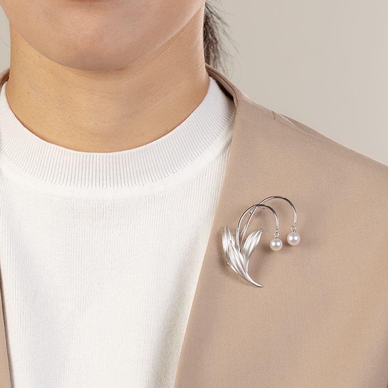 しなやかに伸びる2本の茎と立体的な葉のフォルムは自然の美しさを表現しており、そこに7mmのアコヤパールが可憐なアクセントを添えます。